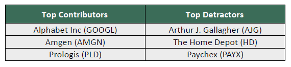 From an individual holdings perspective in the fourth quarter, top contributors to and detractors from performance were: